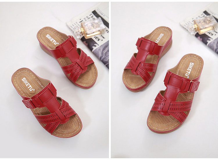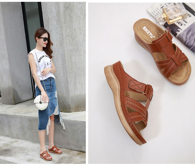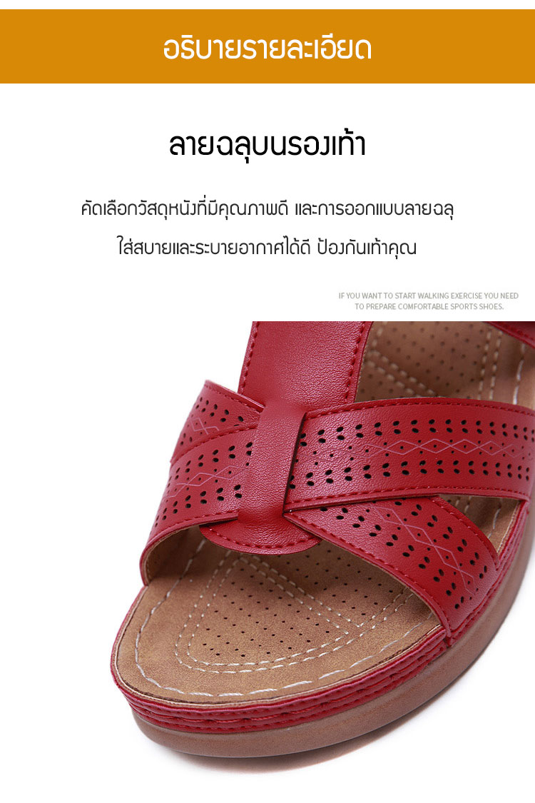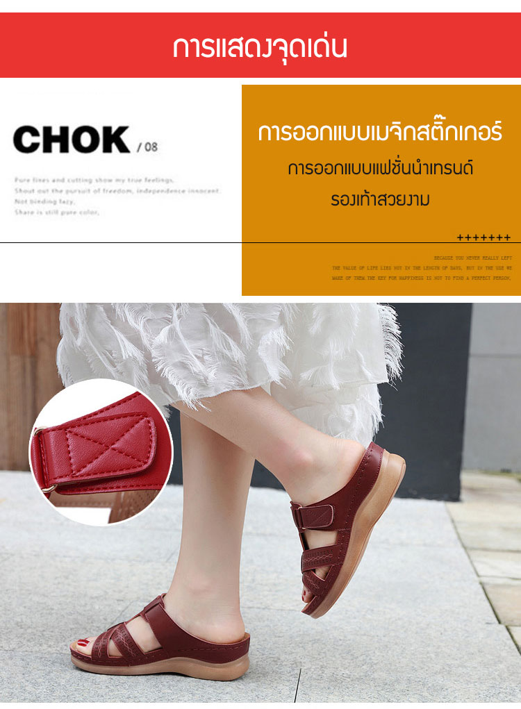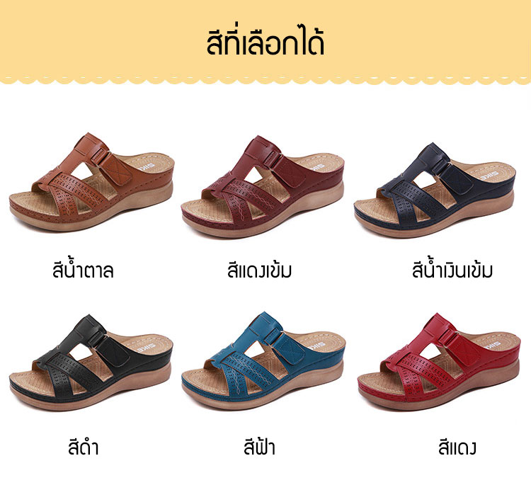 หนังคุณภาพเยี่ยม เย็นสบาย ภายในสูง 5 ซม. ใส่นานไม่เมื่อยเท้า พื้นรองเท้ากันลื่น ทนสึกหรอ ดัดงอไม่หัก แฟชั่น แมตช์ง่าย มี 4 สีให้เลือก